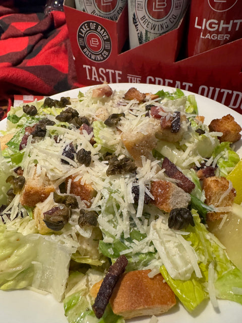Romaine hearts, bacon lardons, crispy capers, sourdough croutons, house dressing on the side.